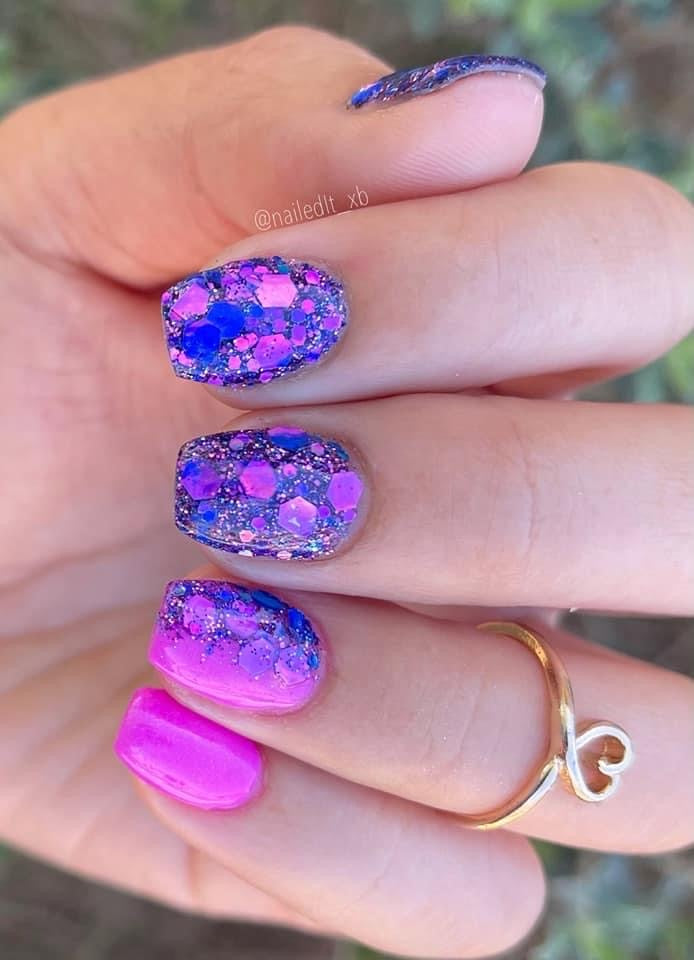 Are You Squidding Me? has a base of blue, purple and pink. The shift between the pink and purple is gorgeous on this one!!