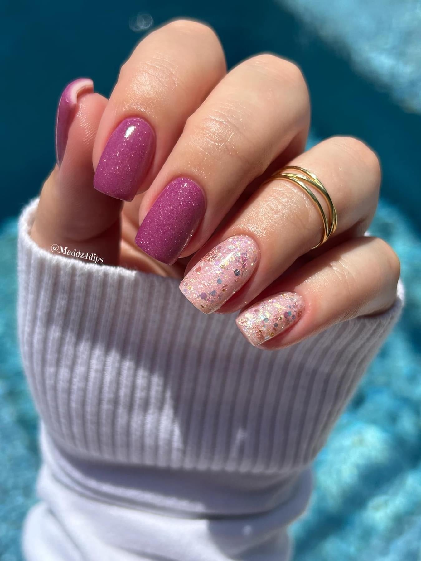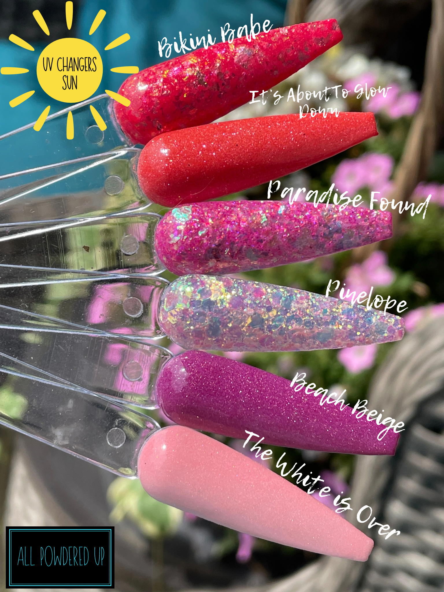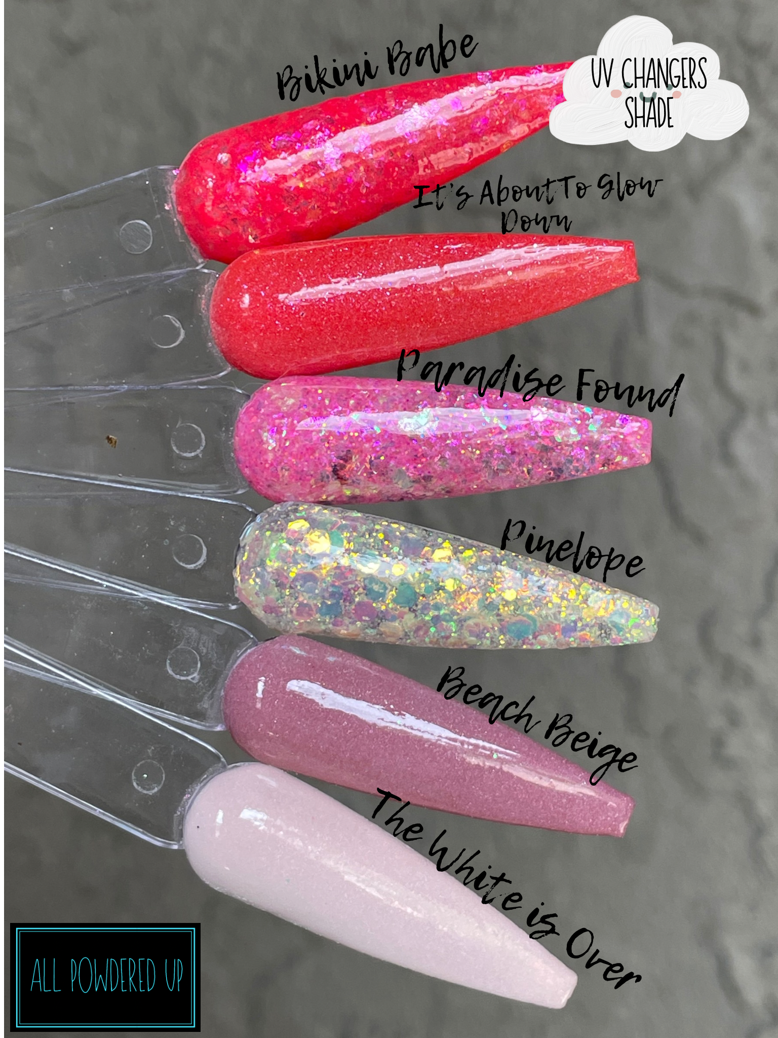 Beach Beige (UV) is a shimmery warm neutral that changes to a gorgeous warmer purple with UV light.