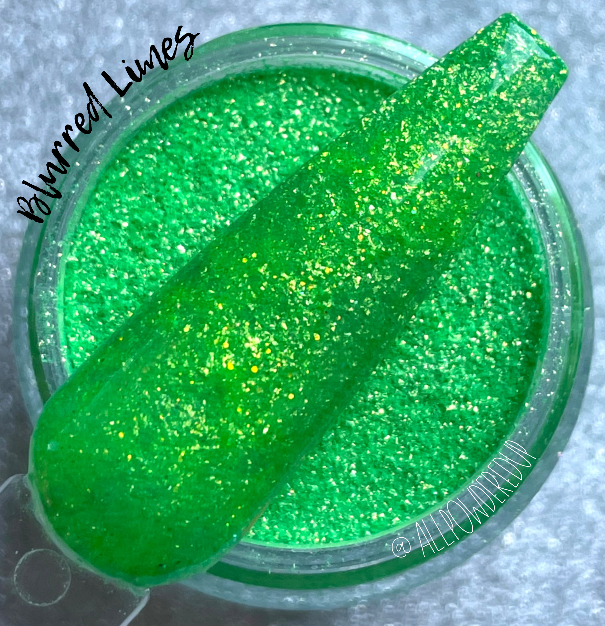 Blurred Limes has a neon green base with just a bit of iridescent glitter and tons of neon green baby flakes!