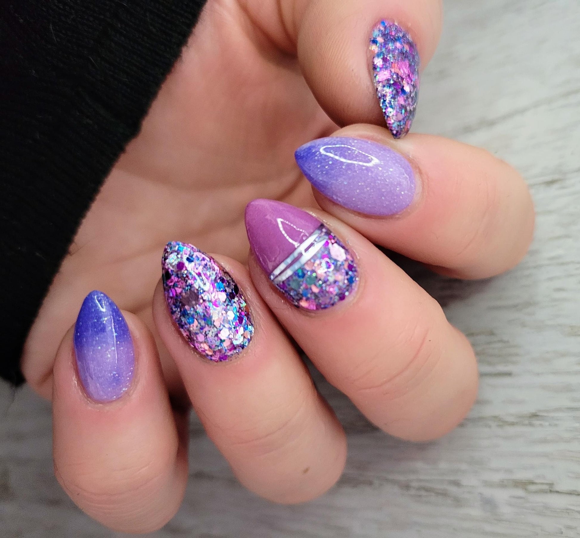 Celestial is a beautiful shimmer thermal dip. When warm it’s a light purple and turns to a deeper blurple when cold