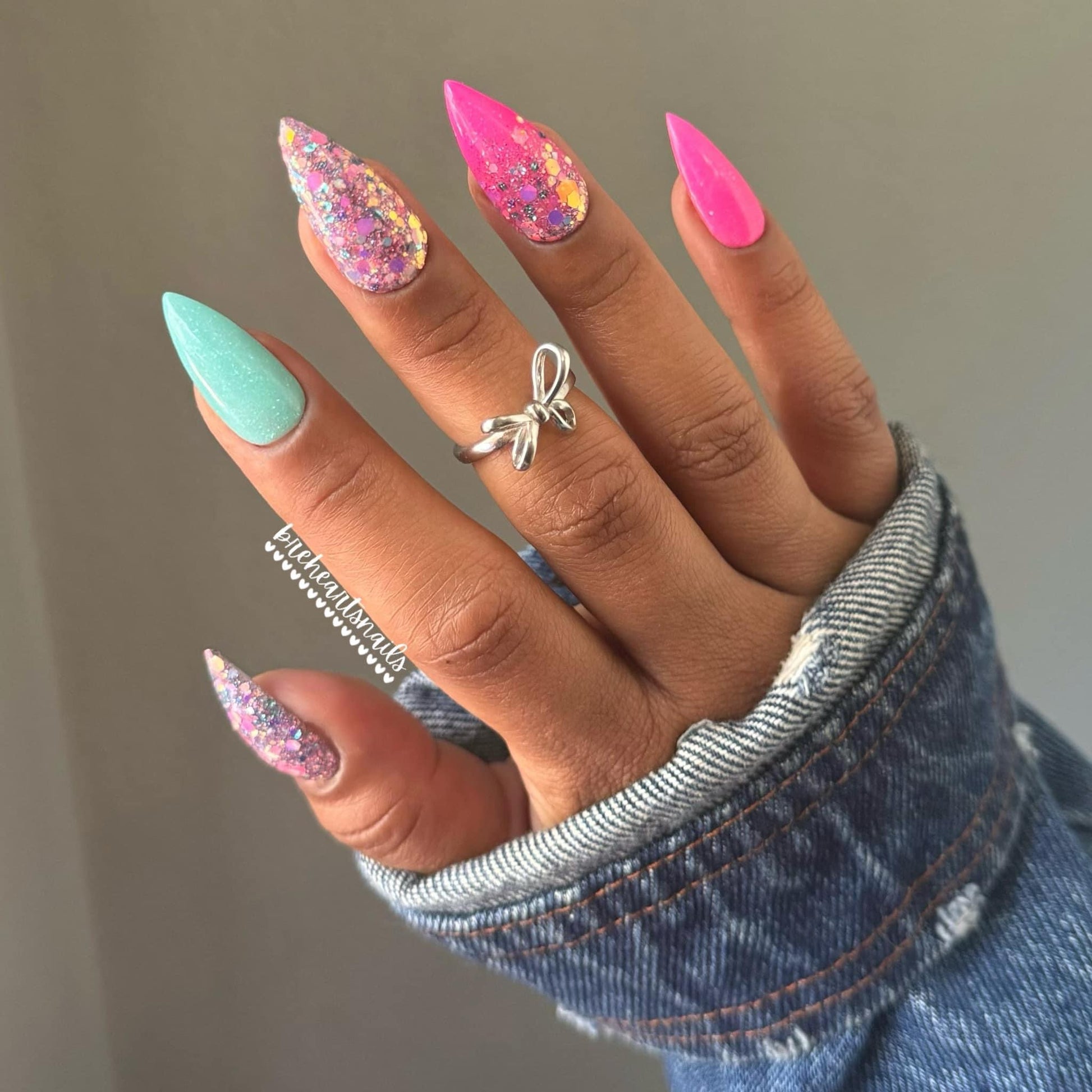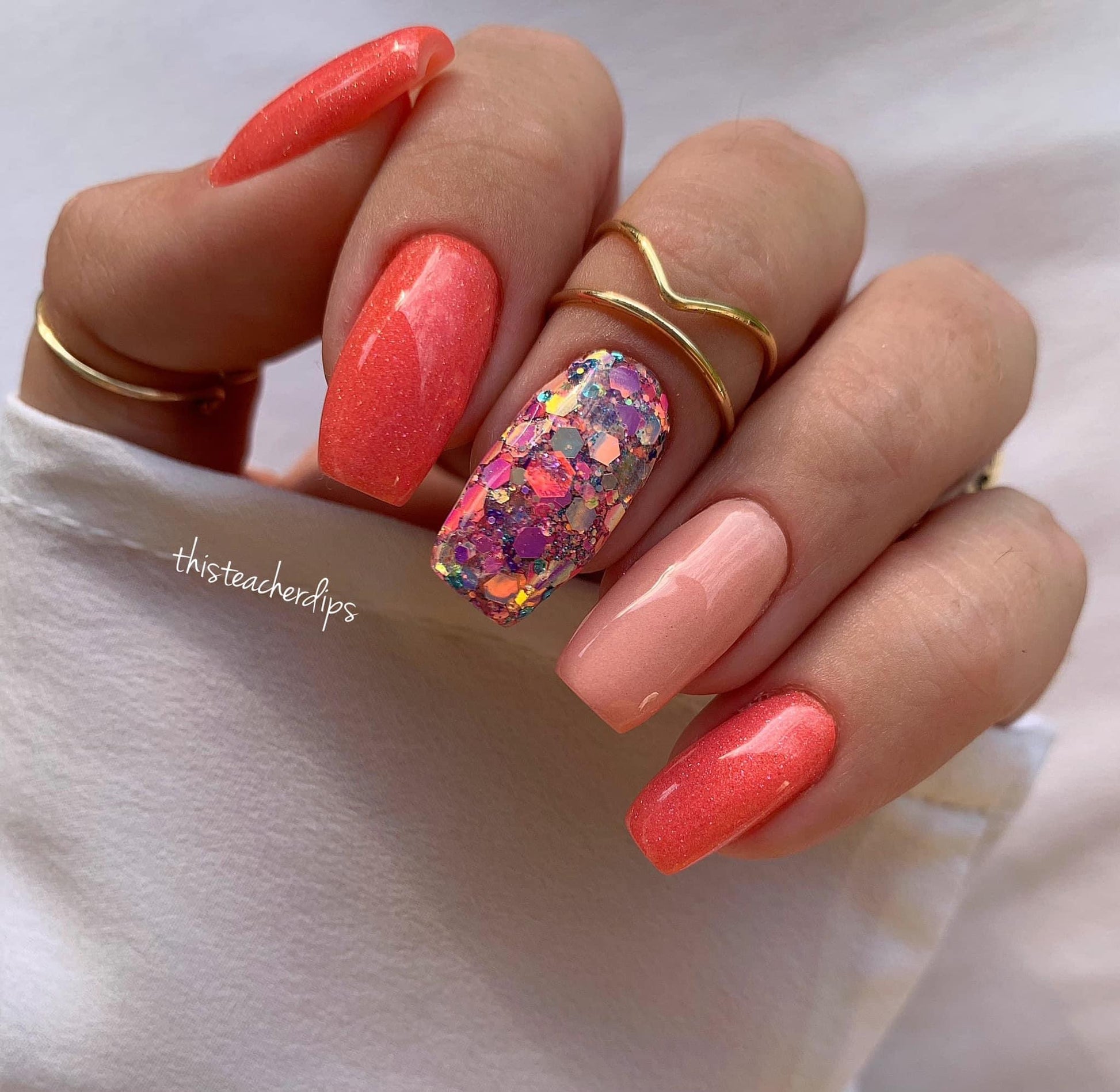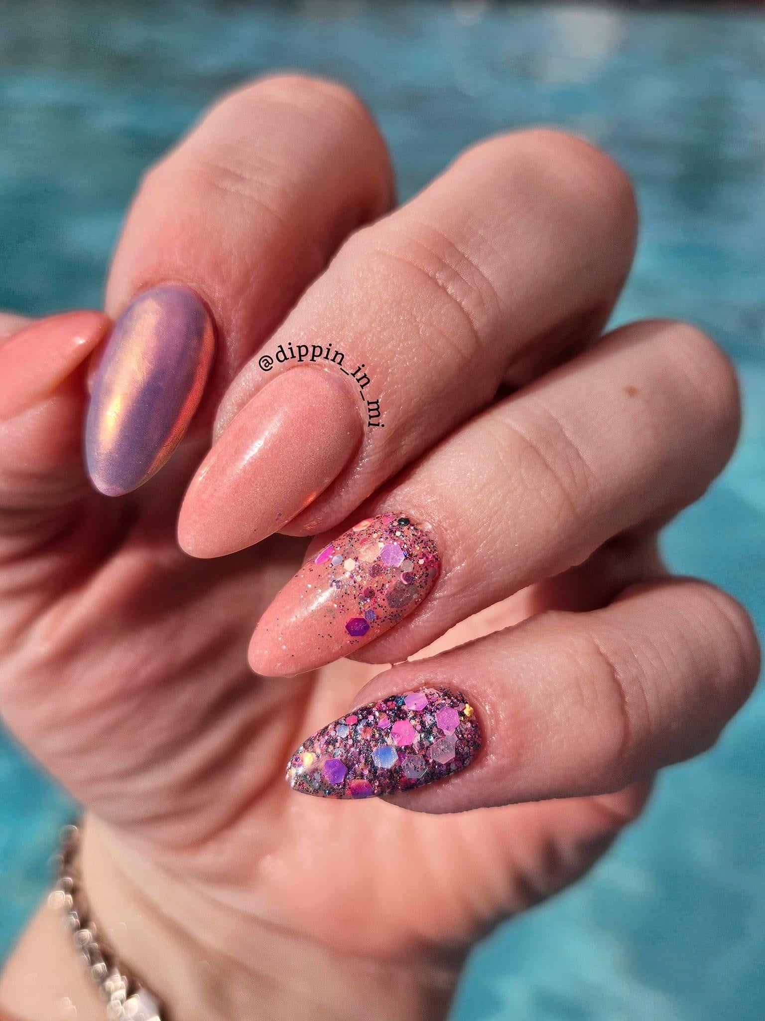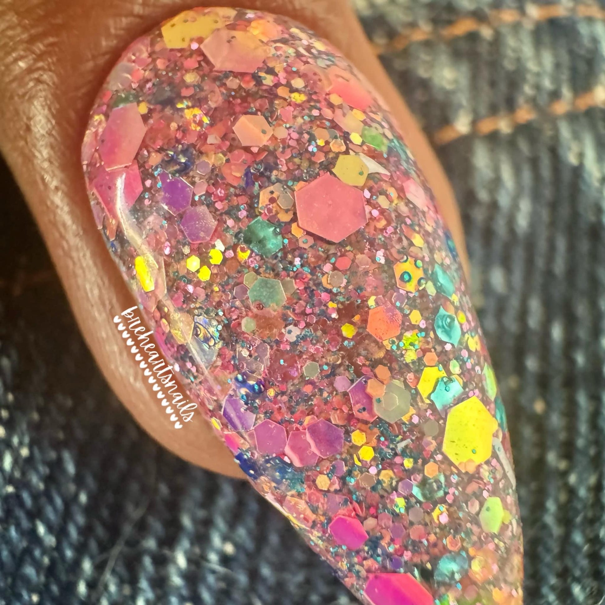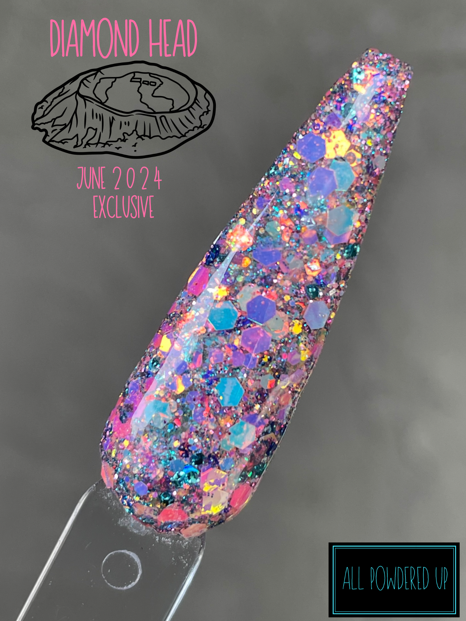 Let’s welcome Diamond Head, APU’s June 2024 exclusive. Inspo for this dip came both looking towards Diamond Head around sunset or looking down at the city at dusk. The peachy coral orange meets shifts of pink, peeks of purple and pops of turquoise. $8/jar