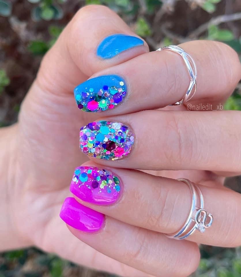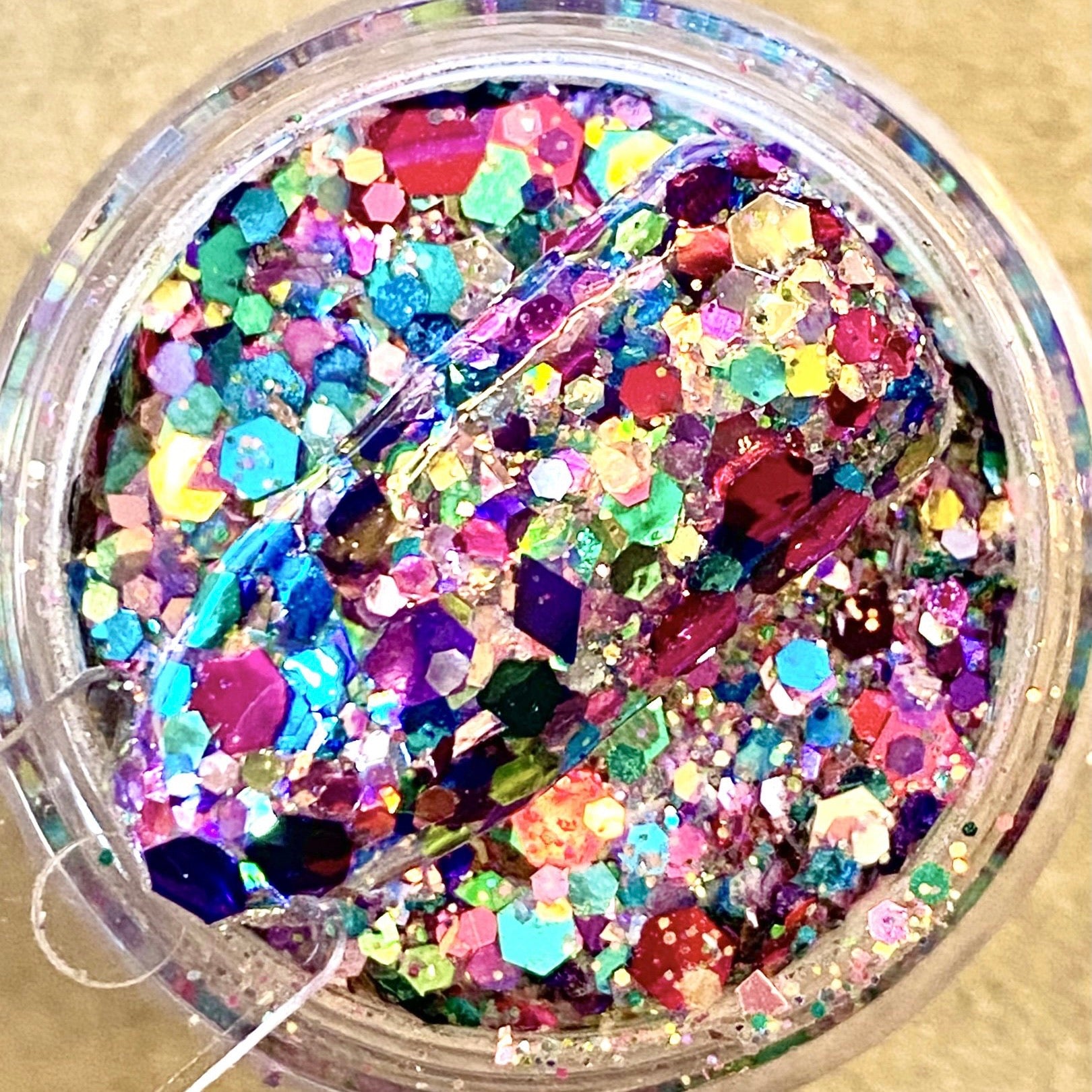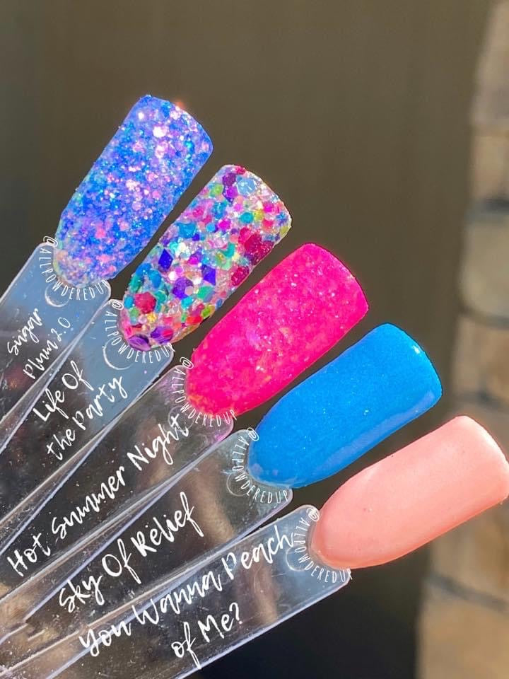 Life of the Party is just that! A party in a dip! There are pinks, purples, teal, turquoise, yellow, pops of green, and silver. She has metallic, iridescent and pearl elements to give this so much dimension.