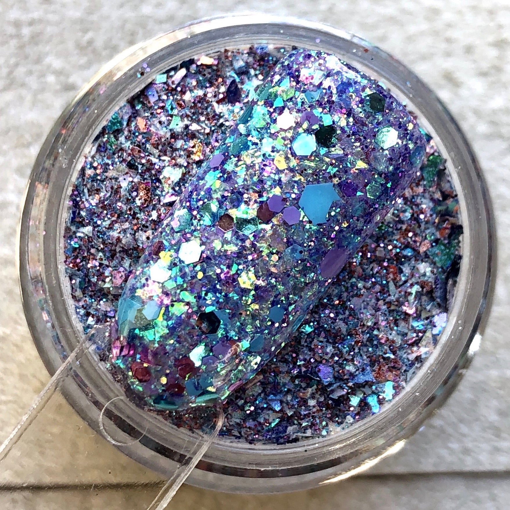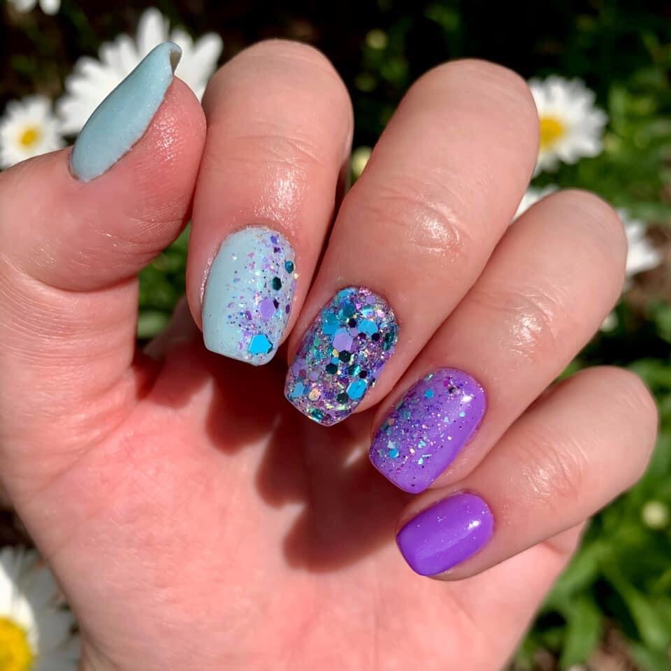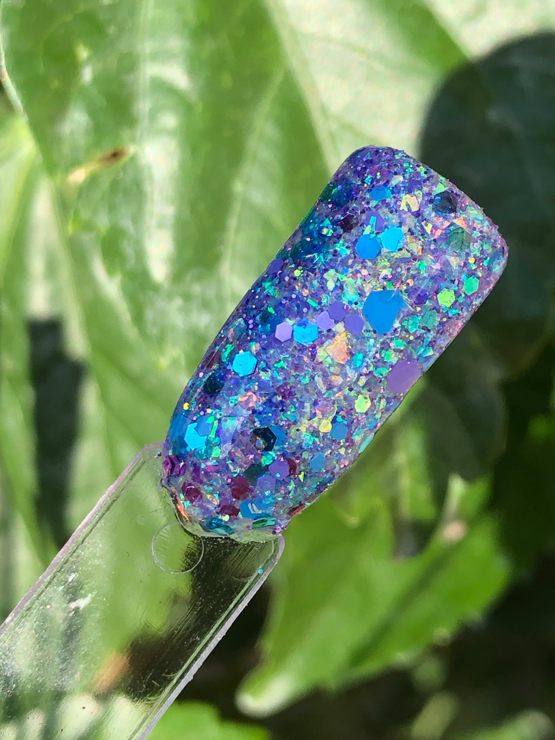 Mermaid Kiss is a fun mix of metallic, iridescent and a few matte glitters in purples and blues. It totally gives off that mermaid feel!
