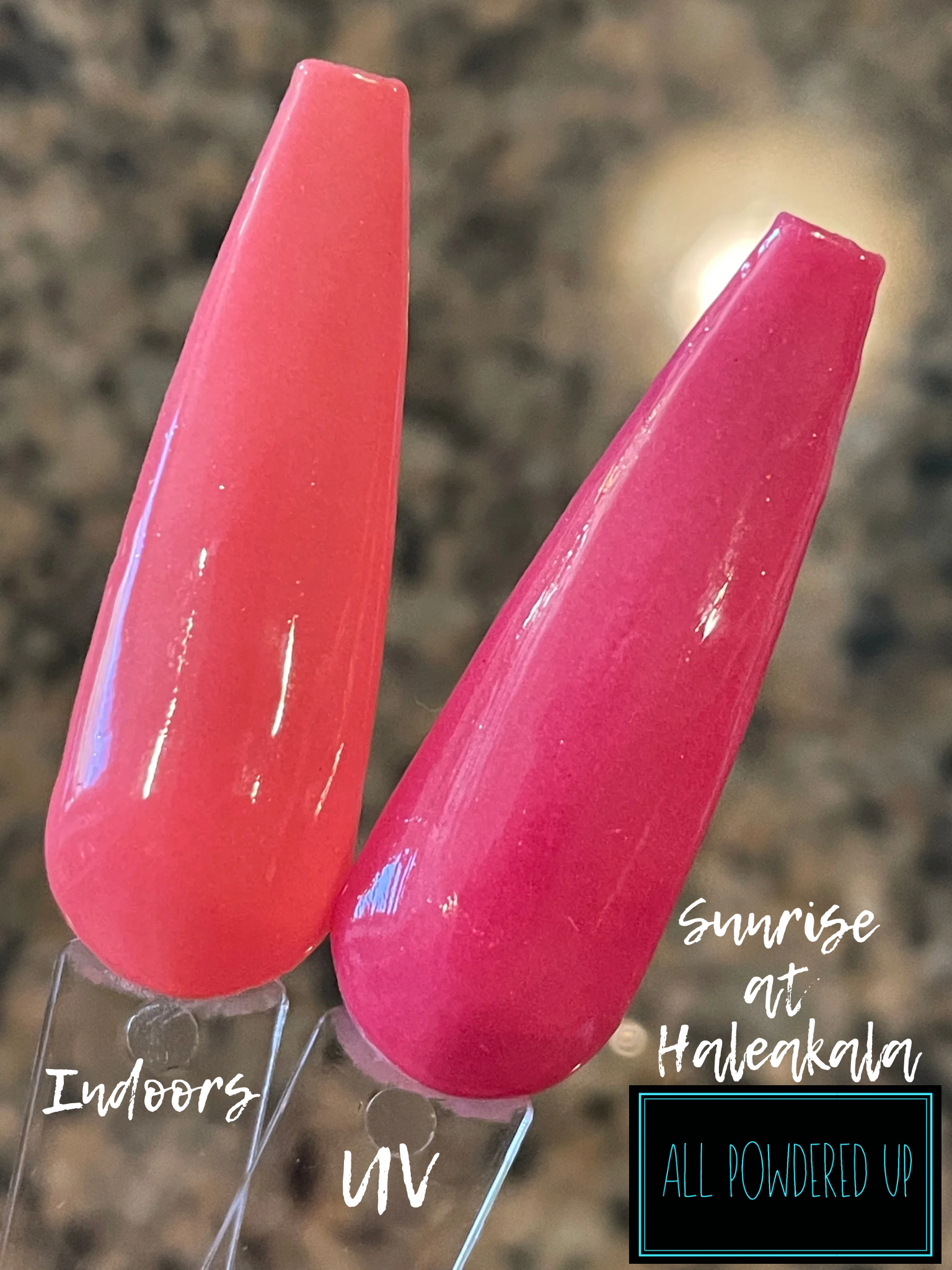 Sunrise at Haleakala (UV) is a solid coral color that changes to a rosy pink when exposed to UV light.