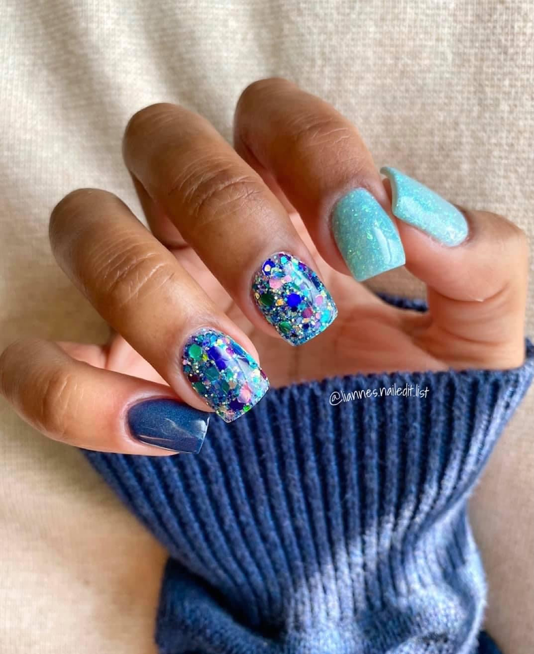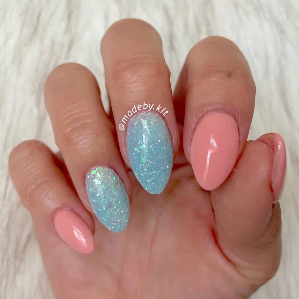 Water You Doing? has a white base when warm and a gorgeous blue when cold. This dip has SO MANY of those amazingly light flakes in there. The flakes shifts towards the greenish side and really remind me of the beautiful ocean water.